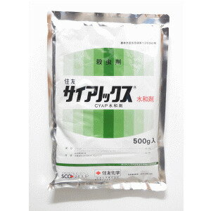 住友サイアノックス水和剤は、チョウ目の害虫やアブラムシに効果がある有機リン系の殺虫剤です。速効性があり、卵にも効果を示します。